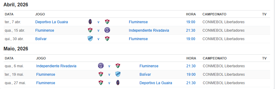 Conheça a agenda completa com as datas e horários dos jogos do Fluzão na libertadores 2026 logo abaixo pessoal.